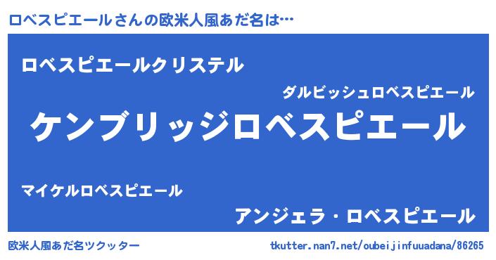 | 男性向けラノベタイトル風あだ名 | 『Re:ロベスピエールから始める異世界生活』 |