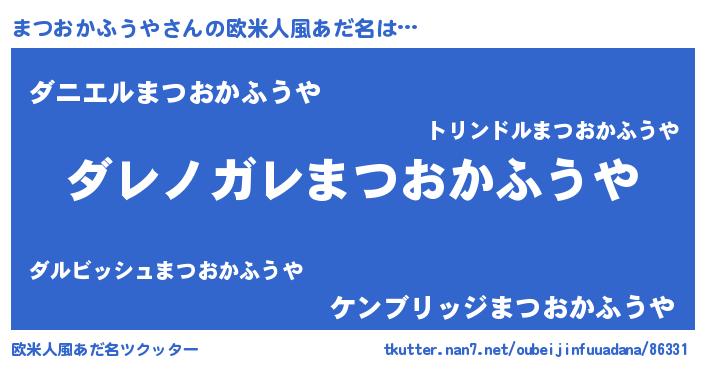| 男性向けラノベタイトル風あだ名 | 『この素晴らしい世界にまつおかふうやを!』 |