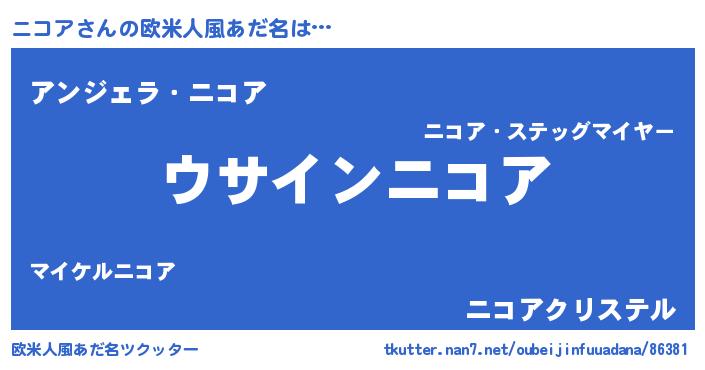 | 意味不明あだ名 | 『とにかく怪しいニコア』『自称ニコア』 |