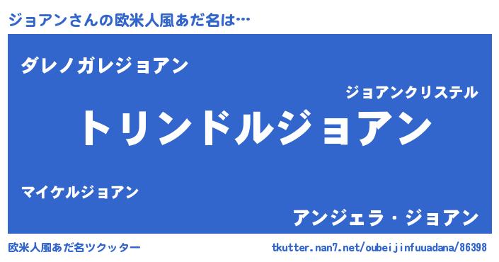 | 男性向けラノベタイトル風あだ名 | 『ジョアン~年齢イコール彼女いない歴の魔法使い~』 |