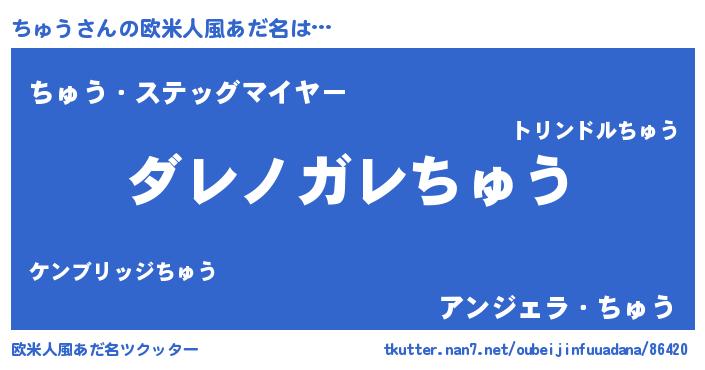 | ヘコむあだ名 | 『ちゅう(遠い目)』『ちゅっ子』 |