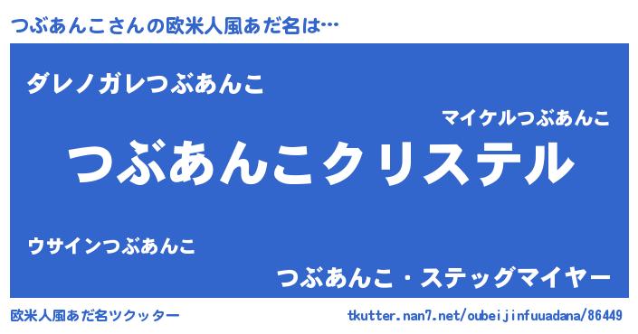 | 男性向けラノベタイトル風あだ名 | 『やはりつぶあんこの青春ラブコメはまちがっている 』 |