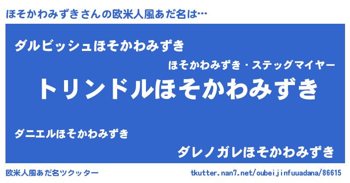 | 男性向けラノベタイトル風あだ名 | 『転生したらほそかわみずきだった件』 |