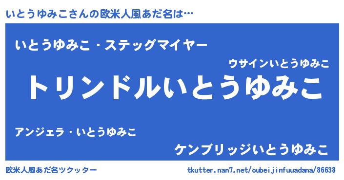 | 女子向けラノベタイトル風あだ名 | 『いとうゆみこの玉の輿計画!』 |