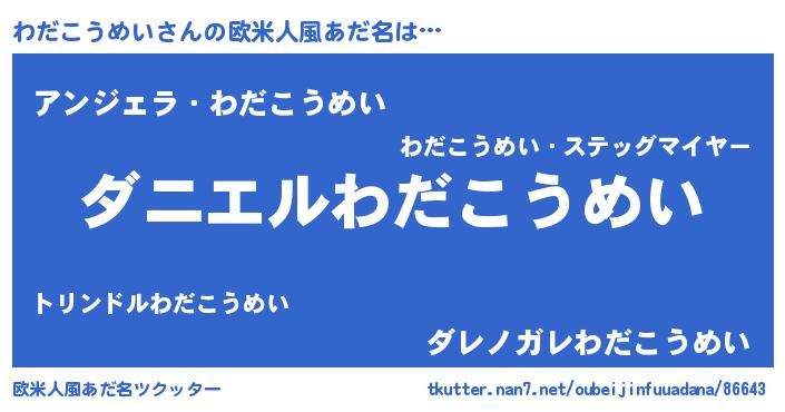 | 男性向けラノベタイトル風あだ名 | 『おまえをオタクにしてやるから、俺をわだこうめいにしてくれ! 』 |