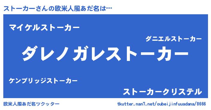 | 男性向けラノベタイトル風あだ名 | 『魔弾の王とストーカー』 |