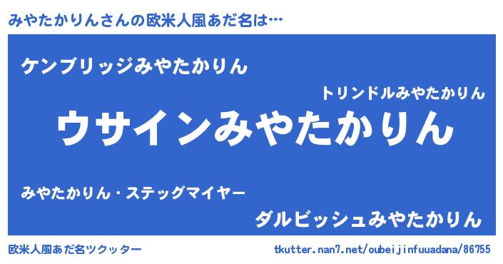 | 女子向けラノベタイトル風あだ名 | 『みやたかりんは平凡を望む』 |
