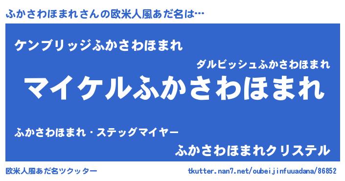 | 恥ずかしいあだ名 | 『プリティーふかさわほまれ』『ふかちん』 |