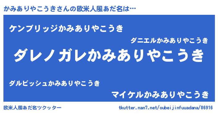| 女子向けラノベタイトル風あだ名 | 『悪役かみありやこうきに転生したようですが、知った事ではありません』 |