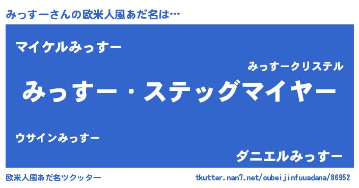 | 胡散臭い通販商品みたいなあだ名 | 『億万長者になれる霊験あらたかなお札…その名も「みっすー」』 |