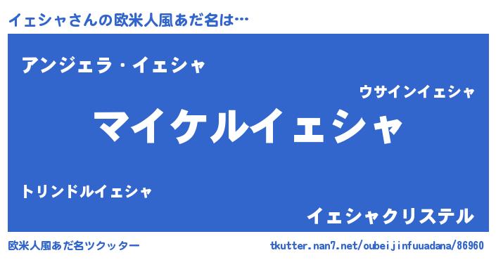 | 男性向けラノベタイトル風あだ名 | 『イェシャの憂鬱』『イェシャスレイヤー』 |