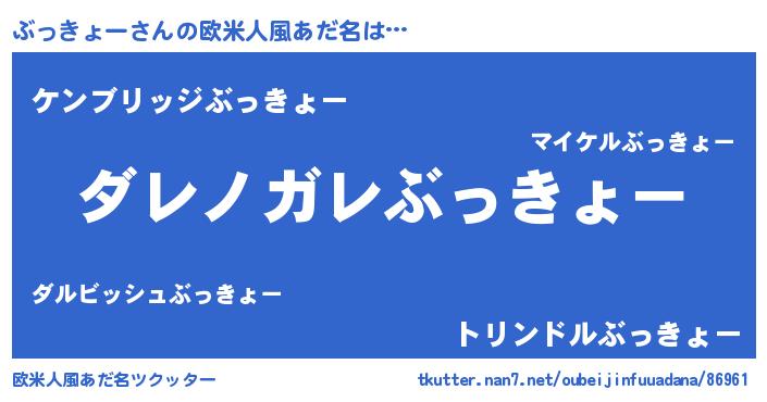 | 男性向けラノベタイトル風あだ名 | 『この素晴らしい世界にぶっきょーを!』 |