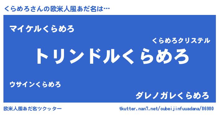 | 女子向けラノベタイトル風あだ名 | 『くらめろの玉の輿計画!』 |