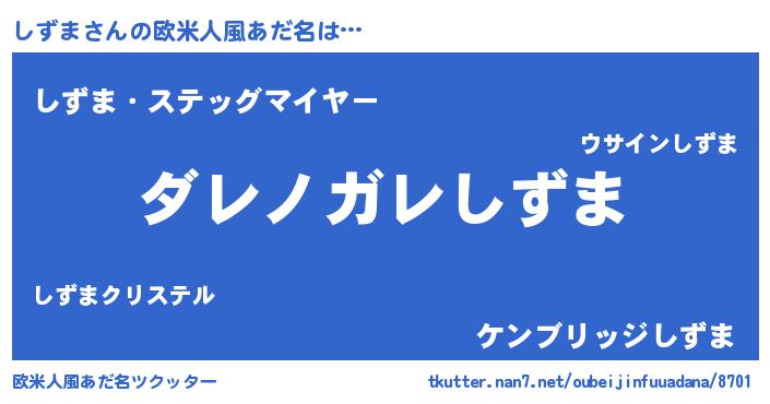 | 男性向けラノベタイトル風あだ名 | 『この素晴らしい世界にしずまを!』 |