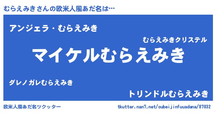 | 男性向けラノベタイトル風あだ名 | 『ムラエミキアートオンライン』 |