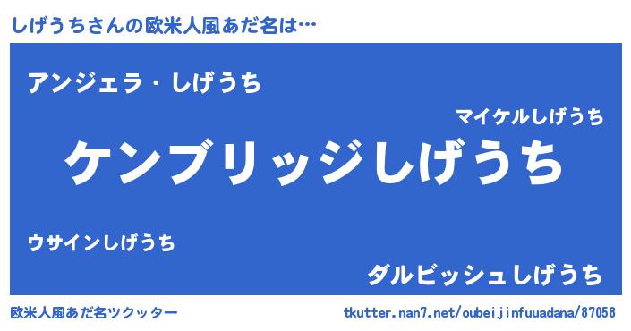 | 意味不明あだ名 | 『自称しげうち』『永久保存しげうち』 |