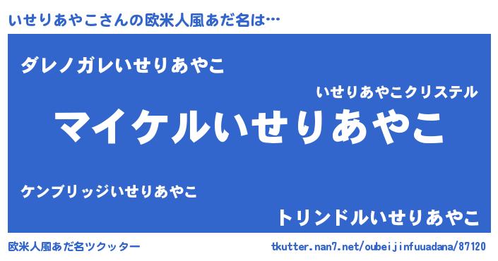 | 女子向けラノベタイトル風あだ名 | 『いせりあやこ姫と円卓の騎士』 |