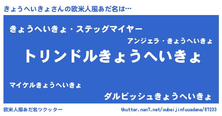 | 男性向けラノベタイトル風あだ名 | 『転生したらきょうへいきょだった件』 |