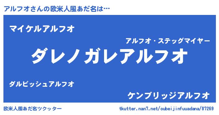 | 意味不明あだ名 | 『住所不定無職アルフオ(71歳)』 |