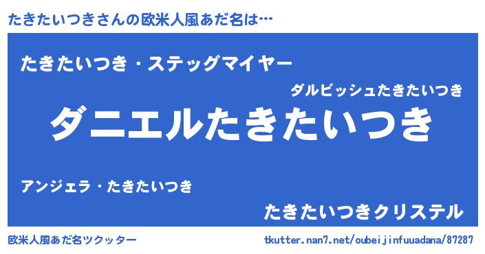 | ヘコむあだ名 | 『豆乳』『たきたいつき(震え声)』 |