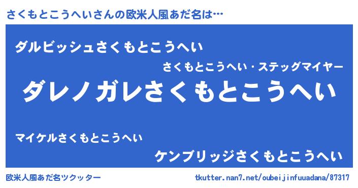 | ヘコむあだ名 | 『さくもとこうへい(爆)』『さくっふぃ~』 |