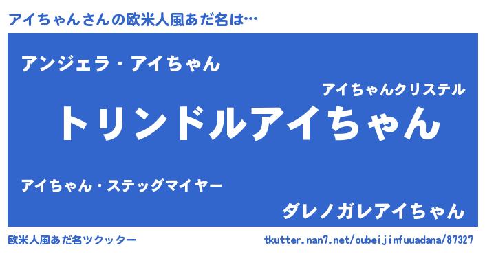 | 男性向けラノベタイトル風あだ名 | 『アイちゃん~年齢イコール彼女いない歴の魔法使い~』 |