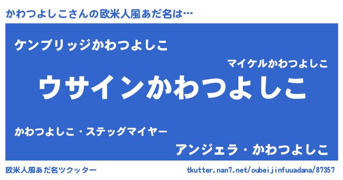 | 男性向けラノベタイトル風あだ名 | 『かわつよしこの嫁は女の子じゃないと思った?』 |