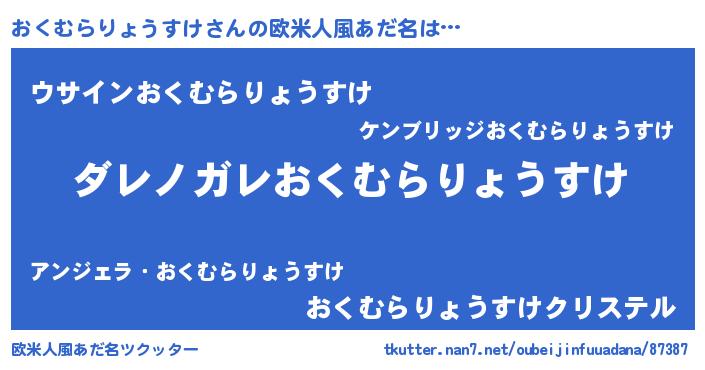 | 男性向けラノベタイトル風あだ名 | 『この素晴らしい世界におくむらりょうすけを!』 |