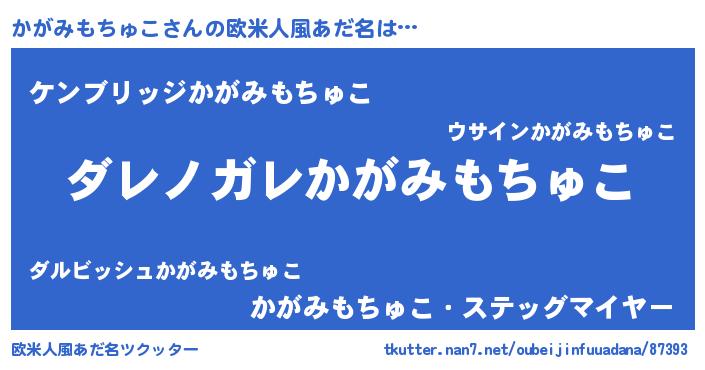 | 意味不明あだ名 | 『住所不定無職かがみもちゅこ(91歳)』 |