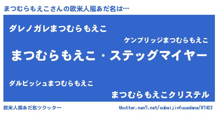 | 意味不明あだ名 | 『住所不定無職まつむらもえこ(89歳)』 |
