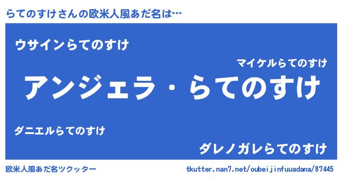 | 男性向けラノベタイトル風あだ名 | 『はたらくらてのすけさま!』 |