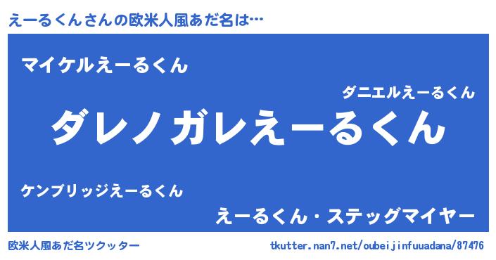 | 男性向けラノベタイトル風あだ名 | 『この素晴らしい世界にえーるくんを!』 |