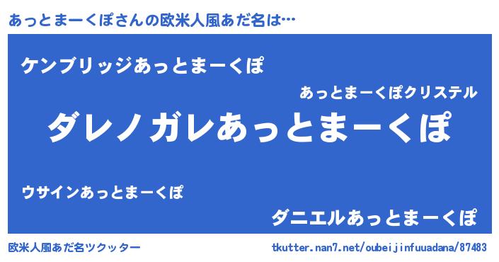 | 男性向けラノベタイトル風あだ名 | 『魔弾の王とあっとまーくぽ』 |