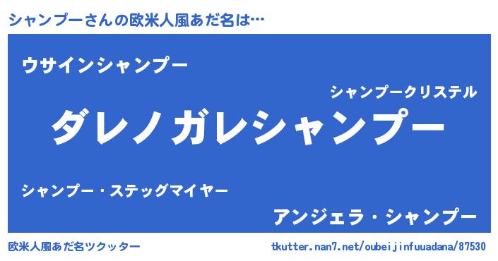 | 男性向けラノベタイトル風あだ名 | 『この素晴らしい世界にシャンプーを!』 |