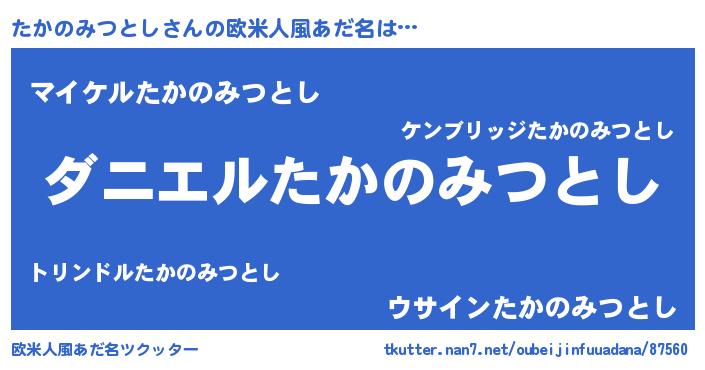 | 男性向けラノベタイトル風あだ名 | 『ノーゲーム・ノータカノミツトシ』 |