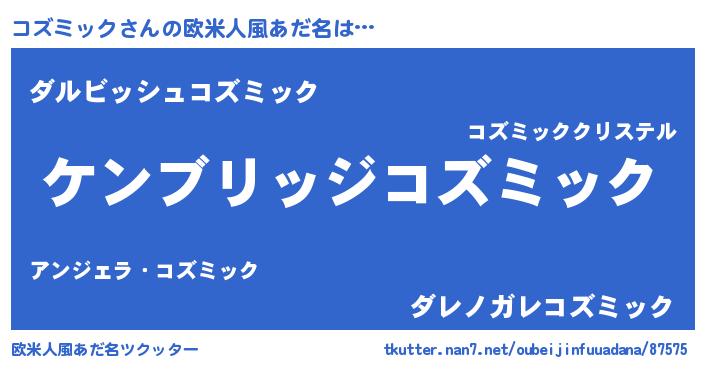 | 女子向けラノベタイトル風あだ名 | 『コズミックなんてお断りですっ。』 |