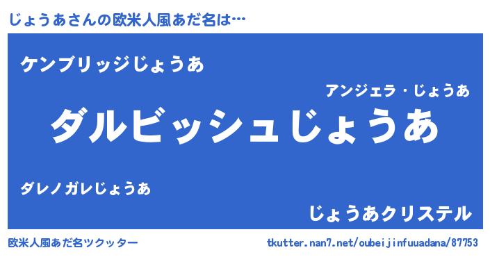 | 女子向けラノベタイトル風あだ名 | 『じょうあの契約王妃』『闇のじょうあ』 |