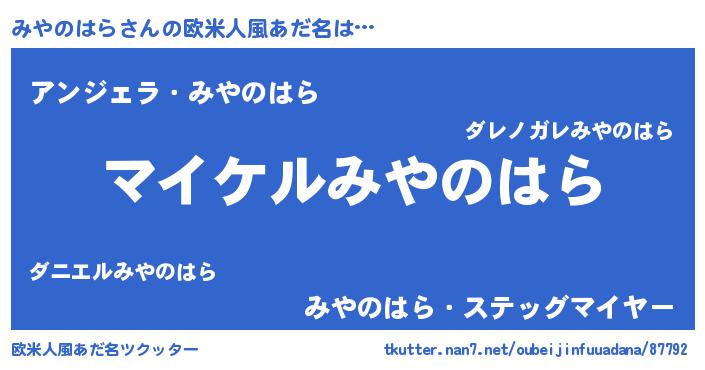 | 男性向けラノベタイトル風あだ名 | 『みやのはらの憂鬱』 |