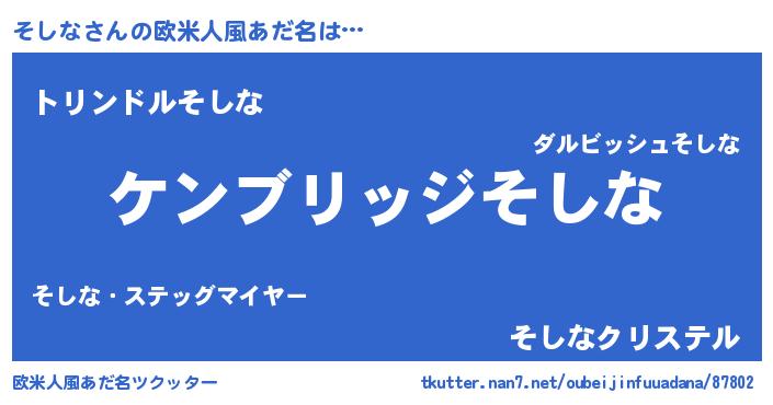 | ヘコむあだ名 | 『豆乳』『そしな(笑)』『そしにゅー』 |