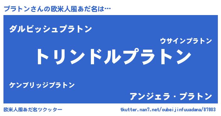 | 男性向けラノベタイトル風あだ名 | 『プラトン~年齢イコール彼女いない歴の魔法使い~』 |
