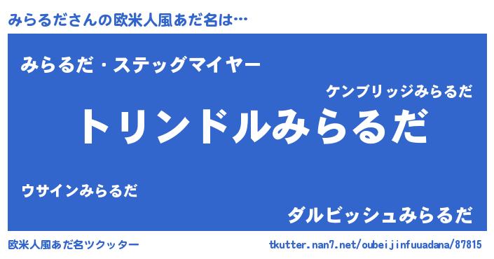 | 男性向けラノベタイトル風あだ名 | 『転生したらみらるだだった件』 |