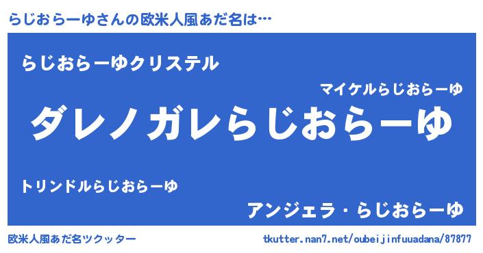 | 料理風あだ名 | 『らじおらーゆのカルパッチョ風』 |