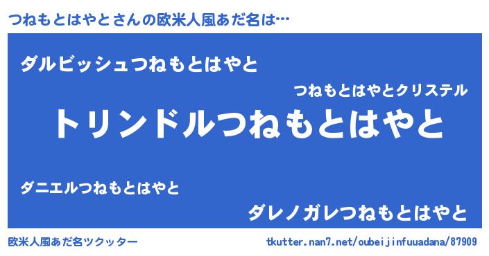 | 女子向けラノベタイトル風あだ名 | 『つねもとはやとの玉の輿計画!』 |