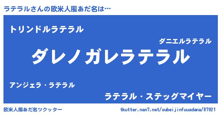 | 男性向けラノベタイトル風あだ名 | 『この素晴らしい世界にラテラルを!』 |