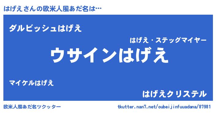 | 胡散臭い通販商品みたいなあだ名 | 『信頼と実績のサプリメント…その名も「はげえ」』 |