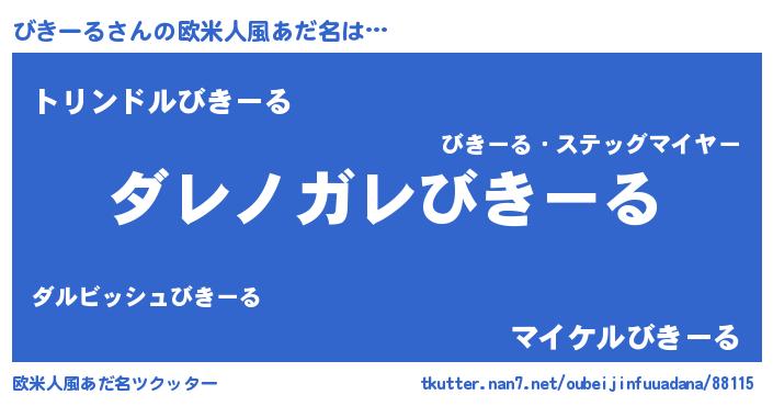 | 男性向けラノベタイトル風あだ名 | 『魔弾の王とびきーる』『びきーるの憂鬱』 |