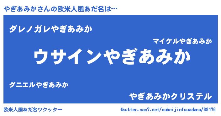 | 男性向けラノベタイトル風あだ名 | 『やぎあみかの嫁は女の子じゃないと思った?』 |
