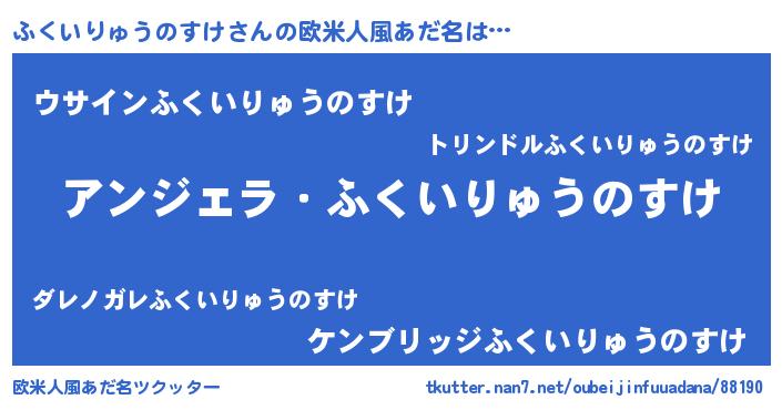 | 男性向けラノベタイトル風あだ名 | 『ふくいりゅうのすけに滅ぼされるだけの簡単なお仕事です』 |
