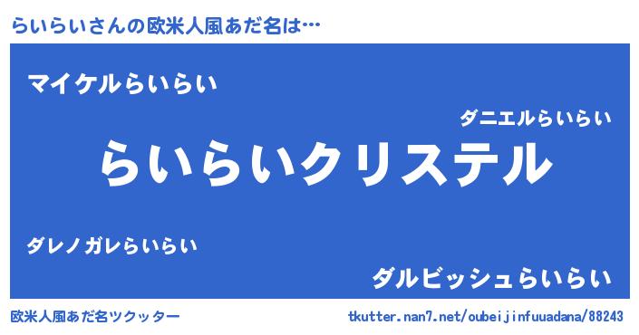 | 女子向けラノベタイトル風あだ名 | 『らいらい伯爵の花嫁』『らいらい恋絵巻』 |