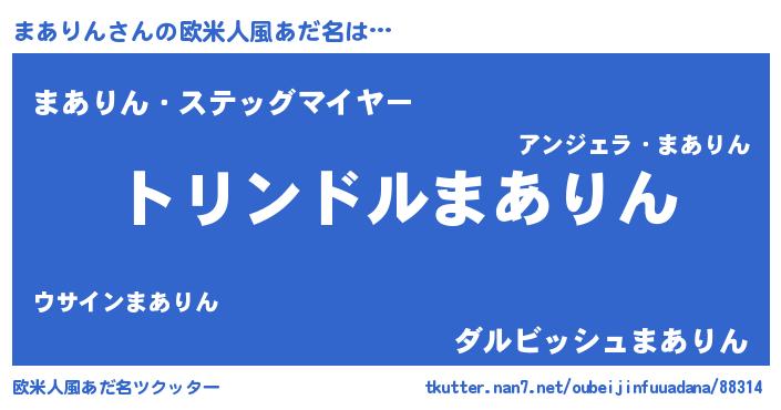 | 胡散臭い通販商品みたいなあだ名 | 『来世でも幸せになれる水素水…その名も「まありん」』 |